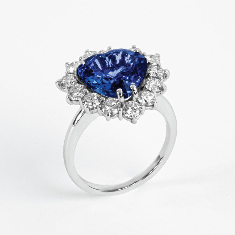 Anello fantasia in oro bianco 750 con zaffiro naturale non trattato e diamanti taglio triangolare